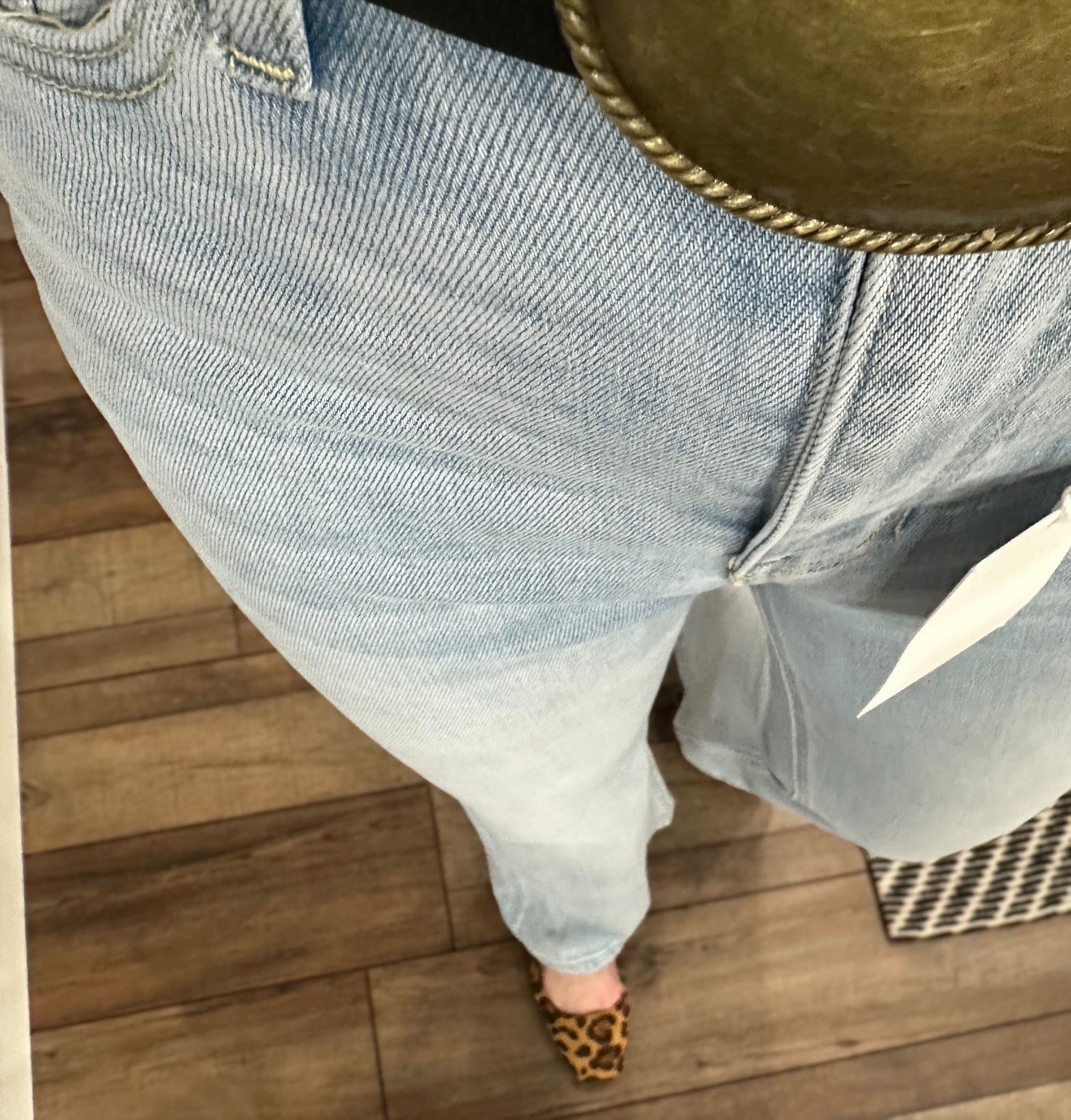 This high-rise petite flare puts a fresh spin on retro style with a form-fitting silhouette through the hips and thighs and an easy flare from the knees. Additionally equipped with five pockets, belt loops and a zip fly closure.